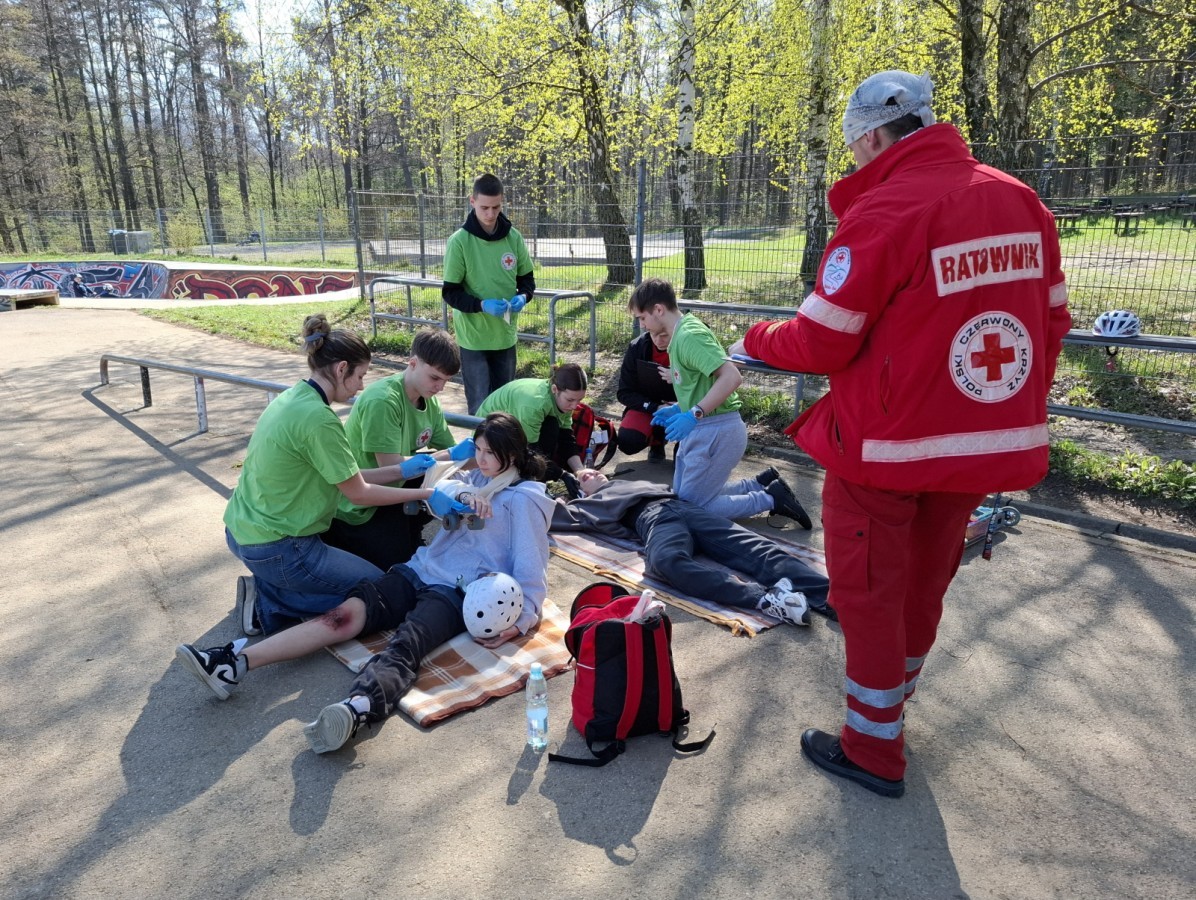 W sobotę 18 kwietnia 2026 roku Bielskie Błonia zamieniły się w arenę wymagająca rywalizacji dla uczniów szkół ponadpodstawowych. Wszystko za sprawą etapu rejonowego XXXII Ogólnopolskich Mistrzostwa Pierwszej Pomocy PCK. Młodzież musiała zmierzyć się z częścią teoretyczną, jak i praktyczną. Podczas testu wiedzy sprawdzana była znajomość zasad udzielania pierwszej pomocy oraz informacje dotyczące PCK - najstarszej polskiej organizacji humanitarnej. Na 4 stacjach urazowych, które odtwarzały sytuacje bezpośredniego zagrożenia zdrowia i życia, uczniowie sprawdzali swoje umiejętności ratownicze. Każde zadanie wymagało nie tylko znajomości zasad udzielania pierwszej pomocy, ale także szybkiej oceny sytuacji, podejmowania trafnych decyzji i skutecznej współpracy w zespole.