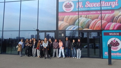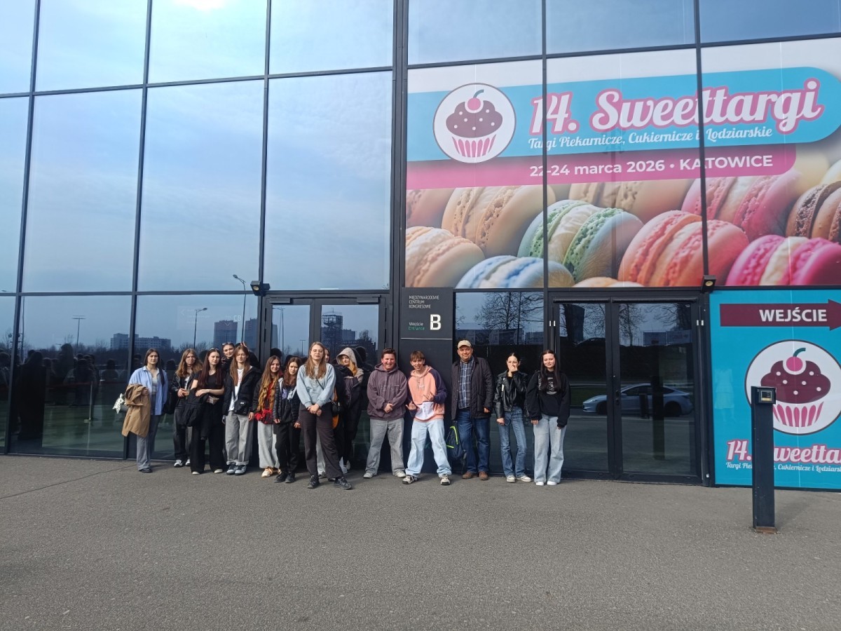 Uczniowie uczący się w zawodzie cukiernik we wtorek 25 marca br. brali udział w jednodniowej wycieczce do Katowic w celu zwiedzenia Targów Cukierniczych i Lodziarskich ,SWEETTARGI` 2026. Przyszli cukiernicy zapoznali się ze obecnymi trendami obowiązującymi w cukiernictwie. Młodzież wzięła udział w krótkich szkoleniach i seminariach. Była także okazja do degustacji lodów ciast oraz zapoznanie się z inspiracjami na nadchodzącą Wielkanoc.