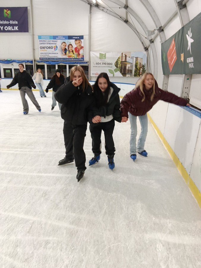 W ramach zajęć wychowania fizycznego w grudniu`2025 uczennice klas 3Ca i 3Fb doskonaliły technikę jazdy na łyżwach, a osoby początkujące mogły nauczyć się podstaw pod okiem nauczyciela. Wyjścia miały na celu promowanie aktywności fizycznej oraz rozwijanie umiejętności jazdy na łyżwach. Uczennice mogły rozwijać koordynację ruchową, równowagę oraz ogólną kondycję, a jednocześnie spędzić czas w mniej formalnej atmosferze niż na sali gimnastycznej. Obecność na lodowisku dostarczyła uczennicom wiele radości i pozytywnej energii.