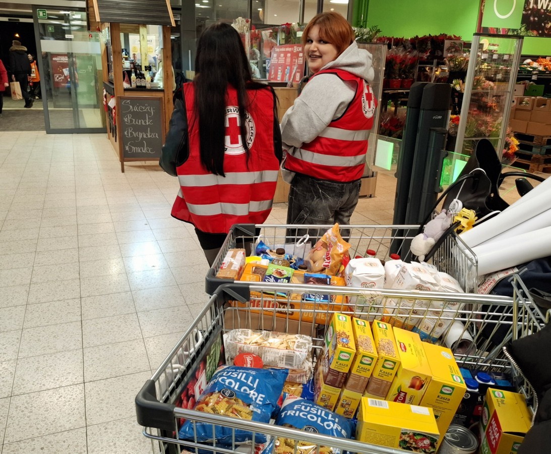 SK PCK co roku angażuje się w zbiórkę żywności przed Świętami Bożego Narodzenia także w hipermarkecie Kaufland. W ostatniej takiej zbiórce wolontariusze naszej szkoły uczestniczyli w piątek 12 grudnia 2025r. Młodzież chętnie udzielała klientom wszystkich niezbędnych informacji dotyczących zbiórki.
